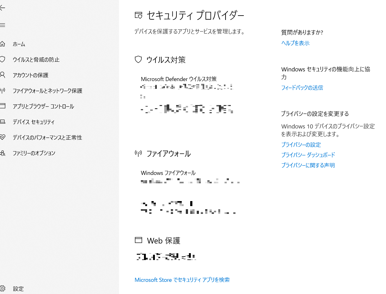 下の画面からWindows Defenderのウイルス対策が有効になっているか確認してください。